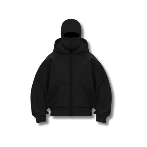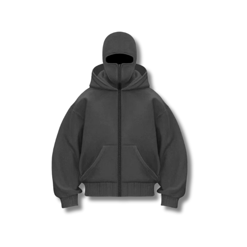 Son design emblématique avec cagoule intégrée zippée offre une protection complète, tout en conservant une silhouette moderne et minimaliste.